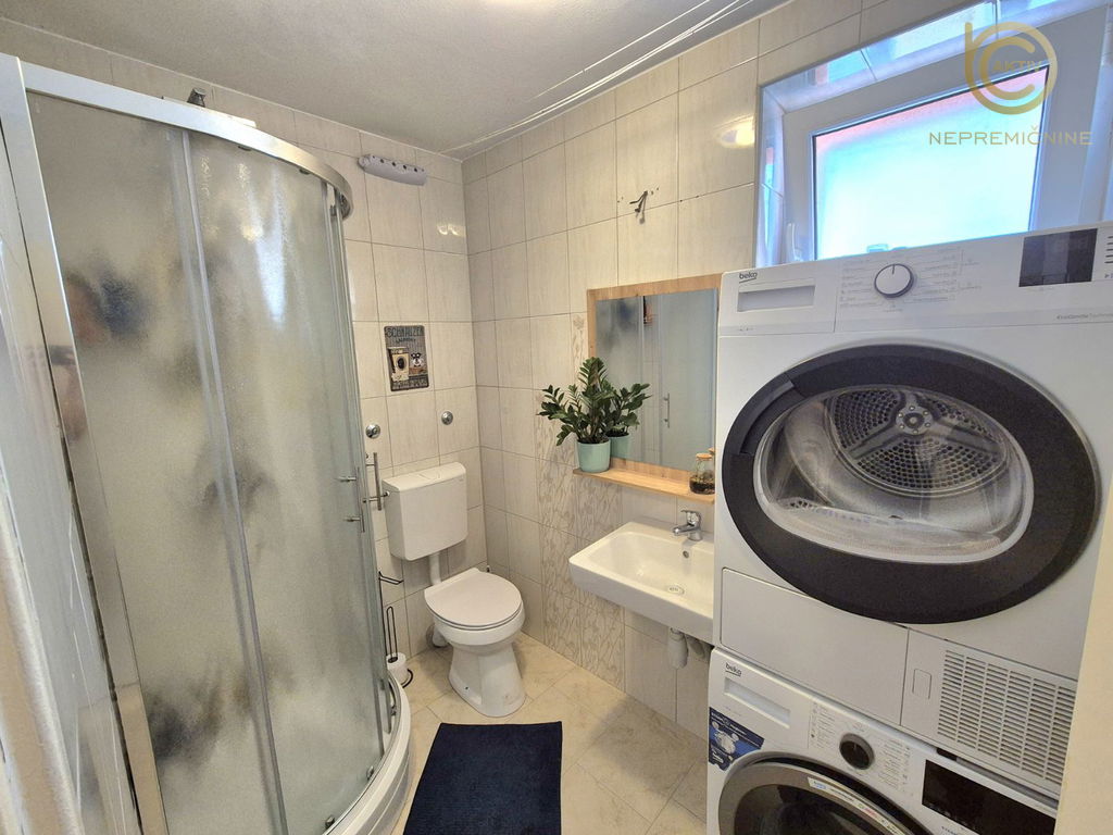 V kopalnici sta poleg kabine za prhanje še pralni in sušilni stroj.