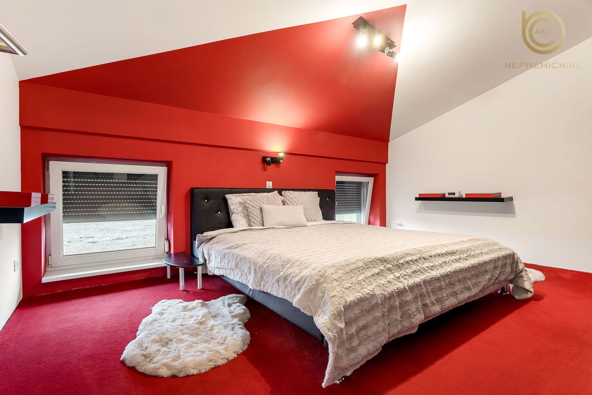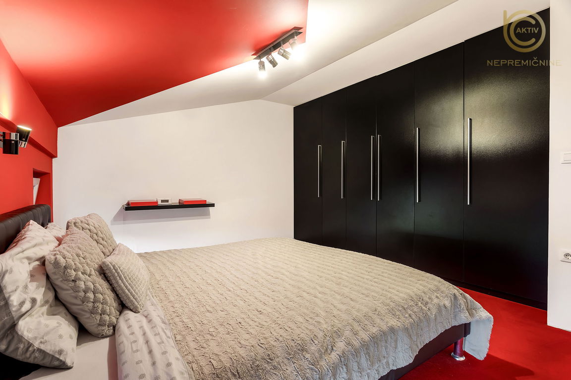 Spalnica je opremljena z zakonsko posteljo in vgradno garderobno omaro.