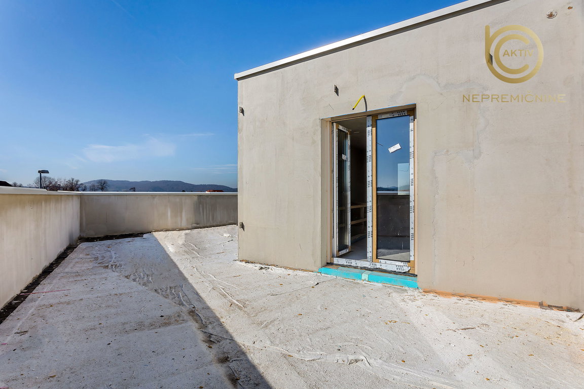 Stanovanje ima lastni vhod in je zasnovano v treh etažah: pritličje, 1. nadstropje in 2. nadstropje. Stanovanju pripadajo atrij, dve terasi, dve parkirni mesti s predpripravo za električno polnilnico ter skupna kolesarnica.