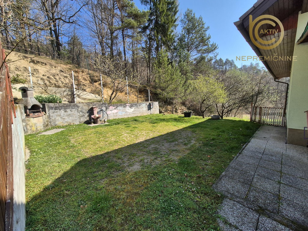 Hiša stoji na zemljišču, ki vključuje dvorišče, zelenjavni in ograjen okrasni vrt z letno kuhinjo in teraso. Celotna parcela meri 3.558 m2 od katerih je približno 1.280 m2 stavbne namenske rabe, v preostalem delu pa je kmetijsko zemljišče oz. gozd. Na zemljišču se nahaja tudi pomožni kmetijski objekt ter manjša starejša hiša (letnik 1930) z lastnimi priključki in hišno številko, ki je primerna za prenovo ali rušitev.