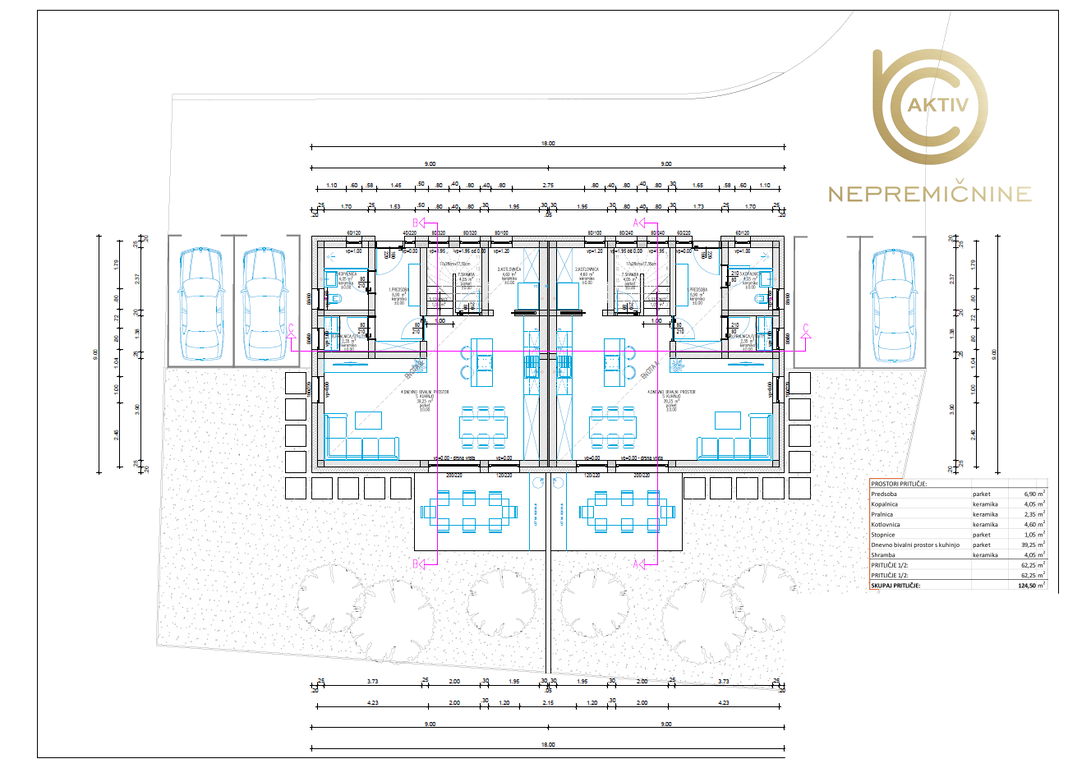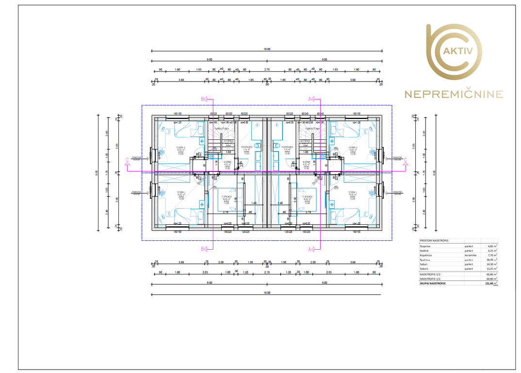 • skupni gabarit objekta: 9,00 m x 18,00 m