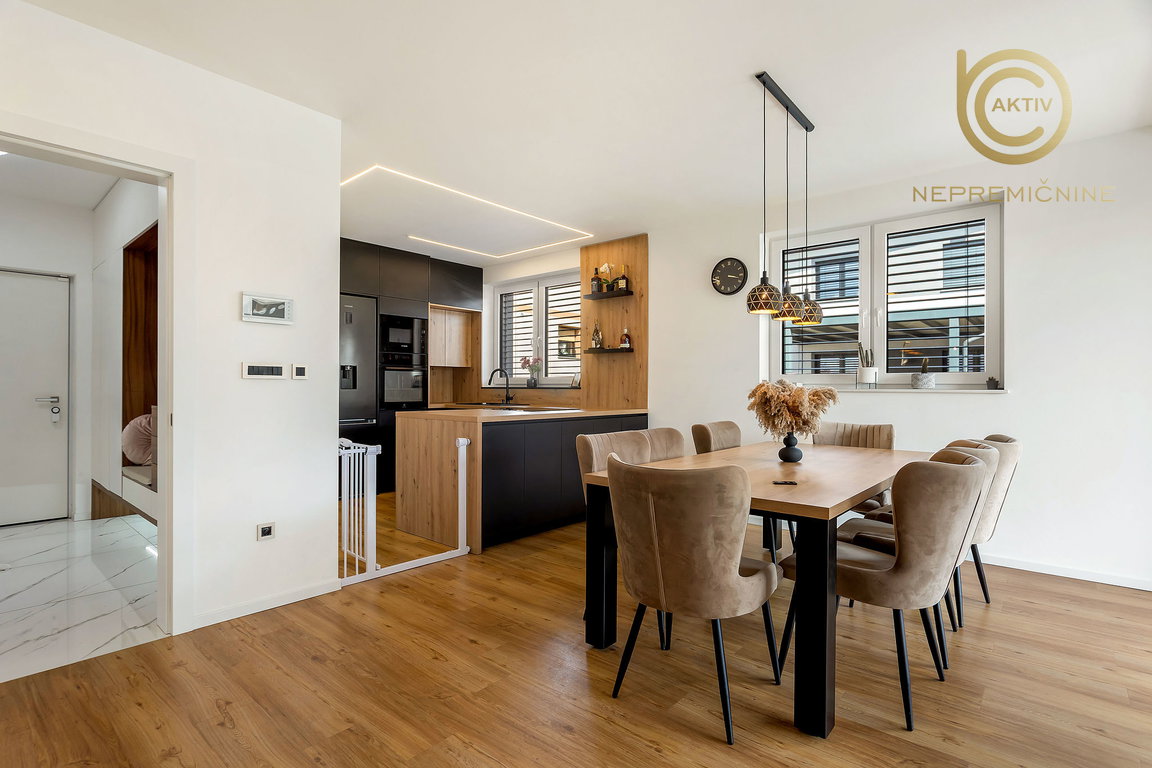 Hiša je zgrajena klasično, kakovostno in po najnovejših energetsko varčnih standardnih. Vgrajeno je stavbno pohištvo višjega cenovnega razreda. Prostori so razporejeni v dveh etažah (P+1), obe etaži pa povezuje notranje stopnišče. Bivalni prostori so orientirani na južno in deloma vzhodno stran, kar zagotavlja veliko mero osončenosti skozi celoten dan.