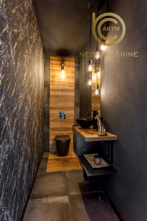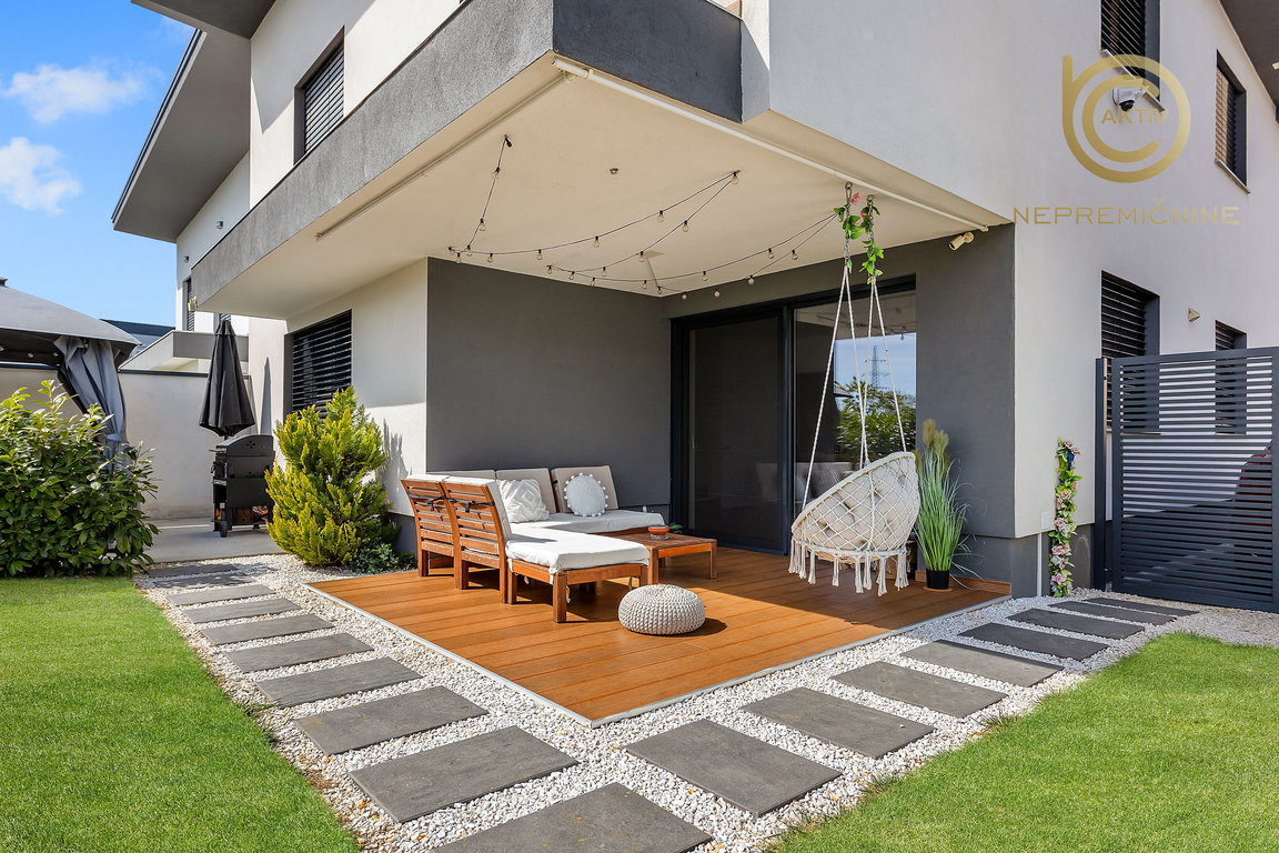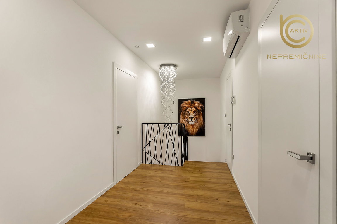 Nepremičnina se prodaja skupaj z vso pripadajočo opremo in pohištvom. Celotno pohištvo je izdelano po meri. Hiša je opremljena s sistemom varovanja (zunanje varnostne kamere, alarm s senzorjem gibanja, alarmni senzorji na oknih in vhodnih vratih). Ključavnica na vhodnih vratih je opremljena s senzorjem za prstni odtis.