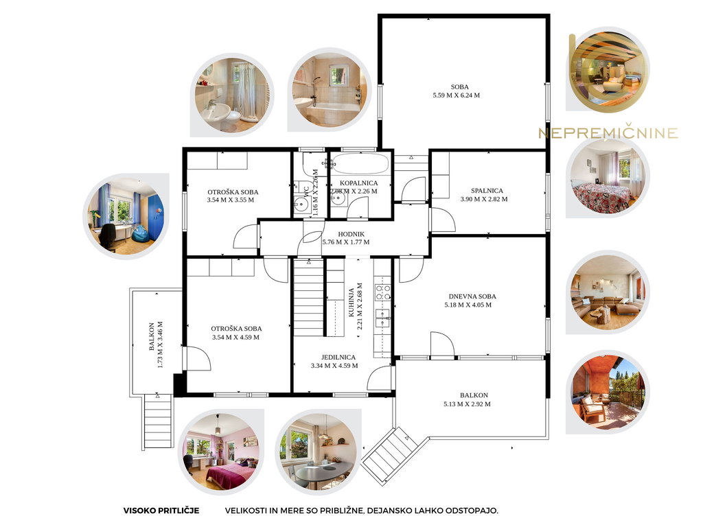 Hiša je prostorna, funkcionalna in estetsko urejena.
