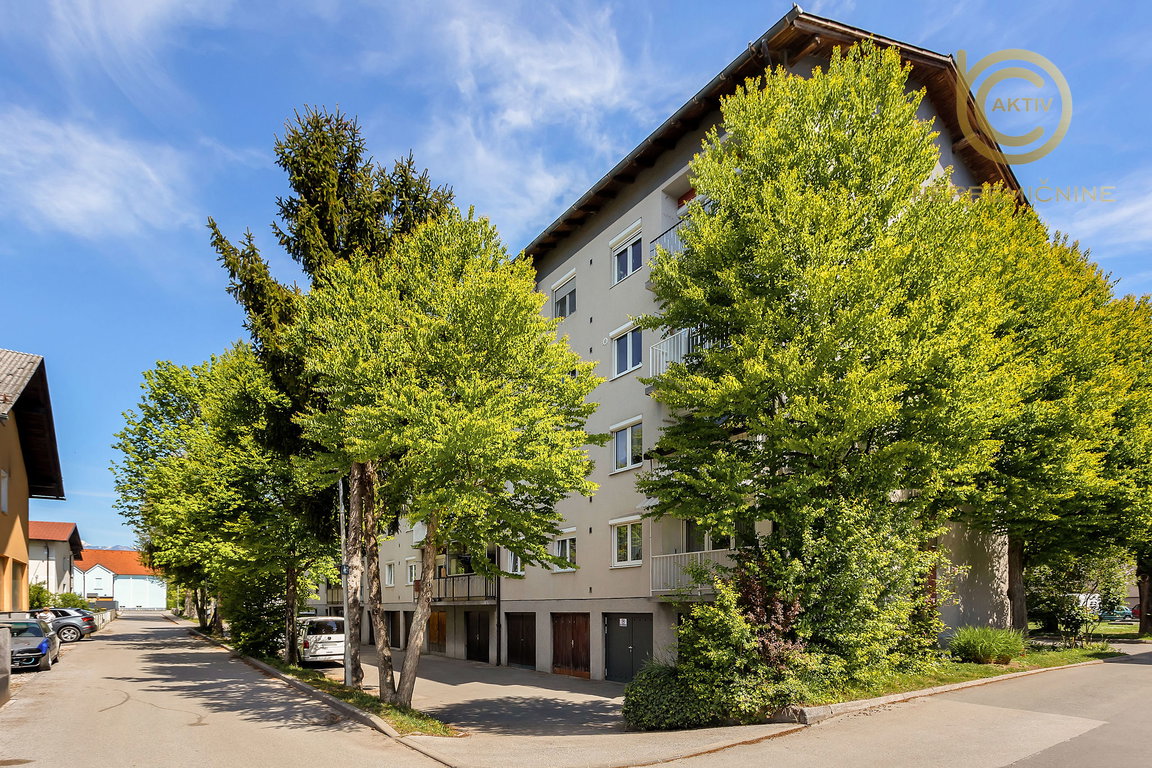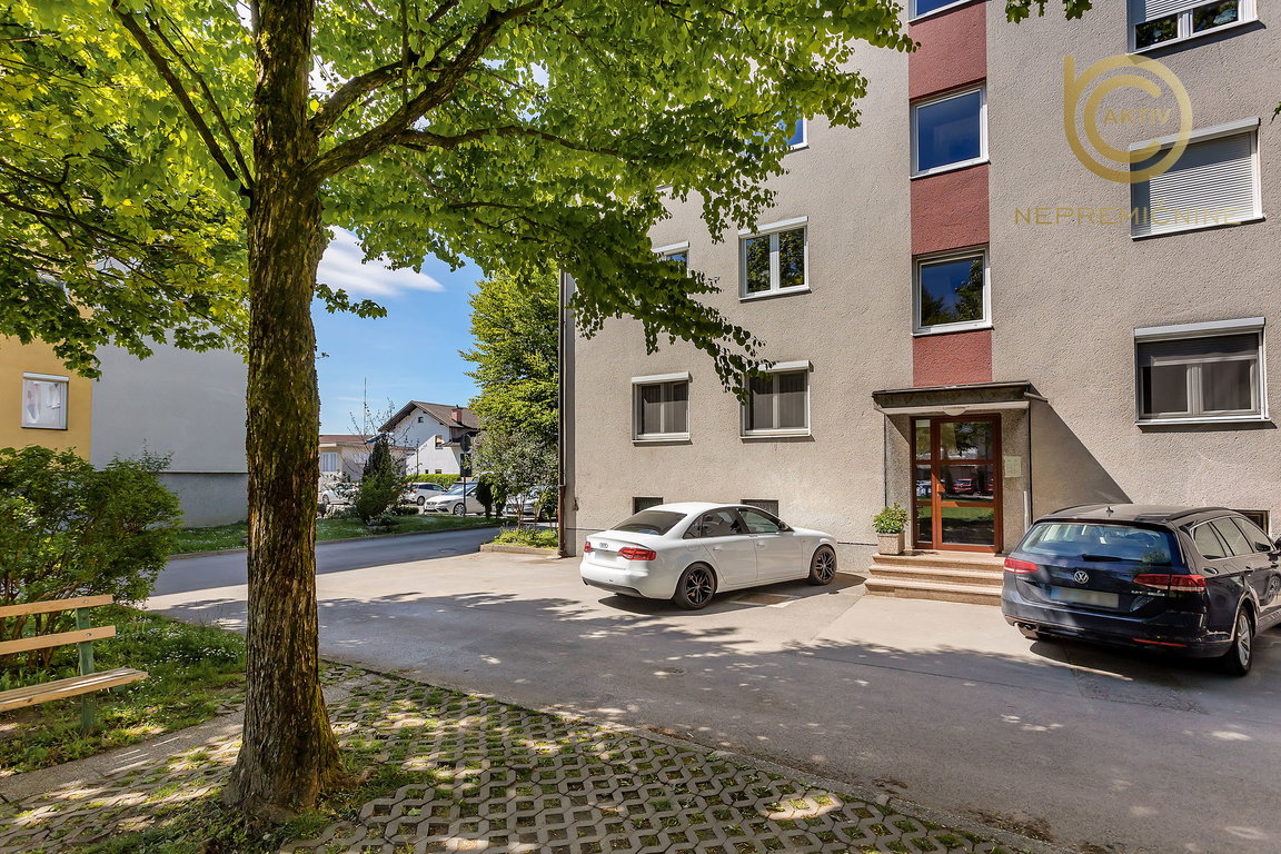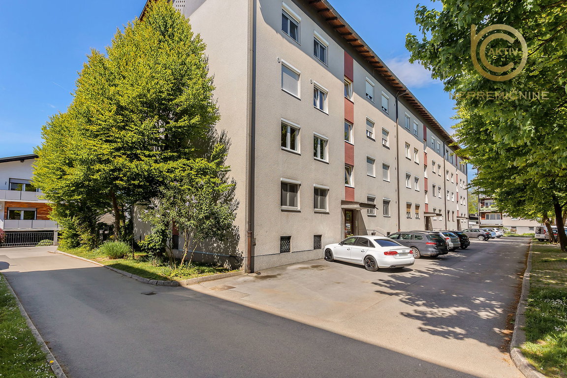 Svetlo, prostorno in izredno lepo urejeno stanovanje je v 4. nadstropju manjšega stanovanjskega bloka. Stavba, ki je bila zgrajena leta 1970, ima 3 vhode, pri čemer je na vhodu št. 1, ki vodi do opisanega stanovanja, 12 stanovanj. V stavbi ni dvigala. Parkirišča za stanovalce so v neposredni bližini stavbe.