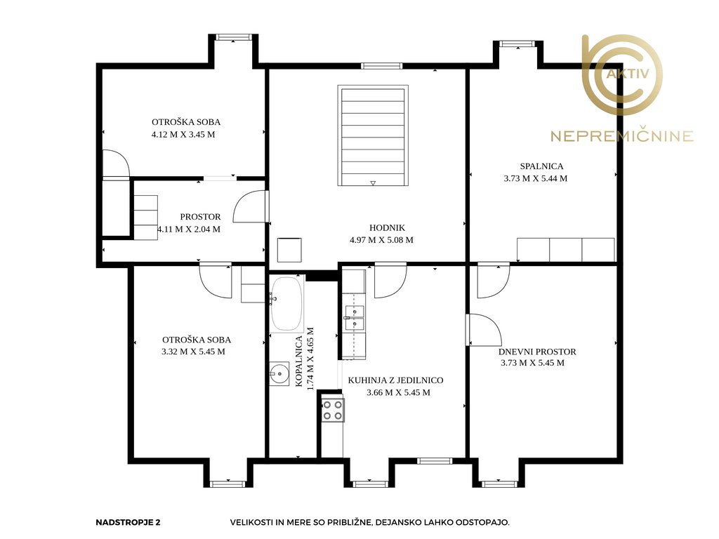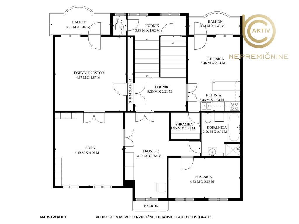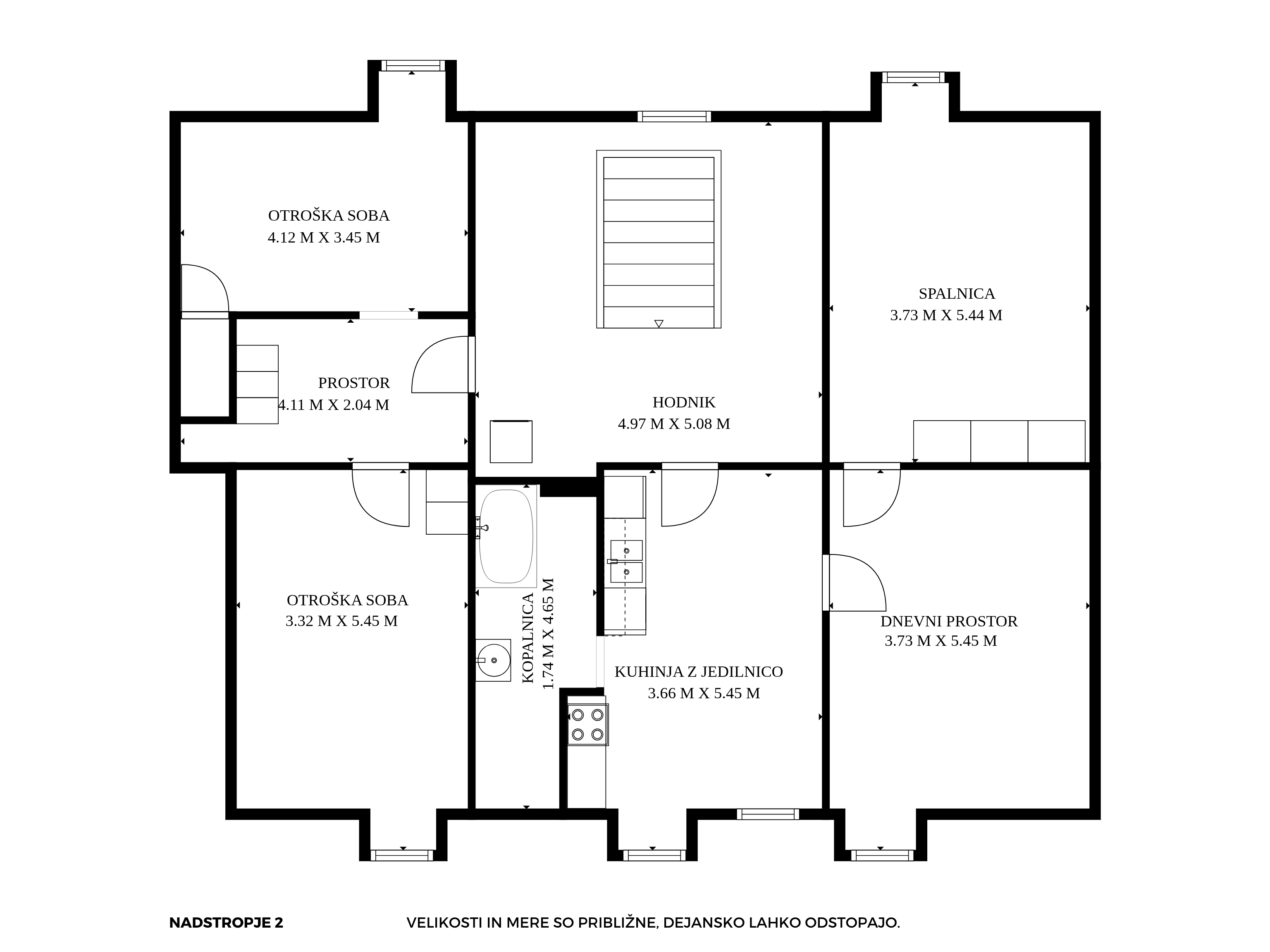 Prostori so odprti, svetli in povezani z balkoni s pogledom na Ljubljanski grad. Za hišo so dvorišče, čudovit vrt in delavnica.