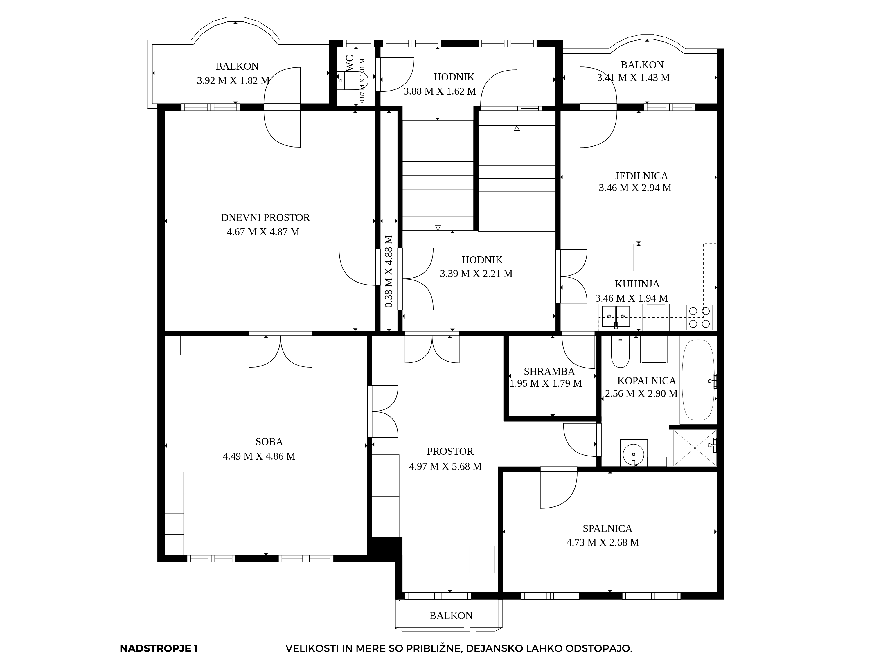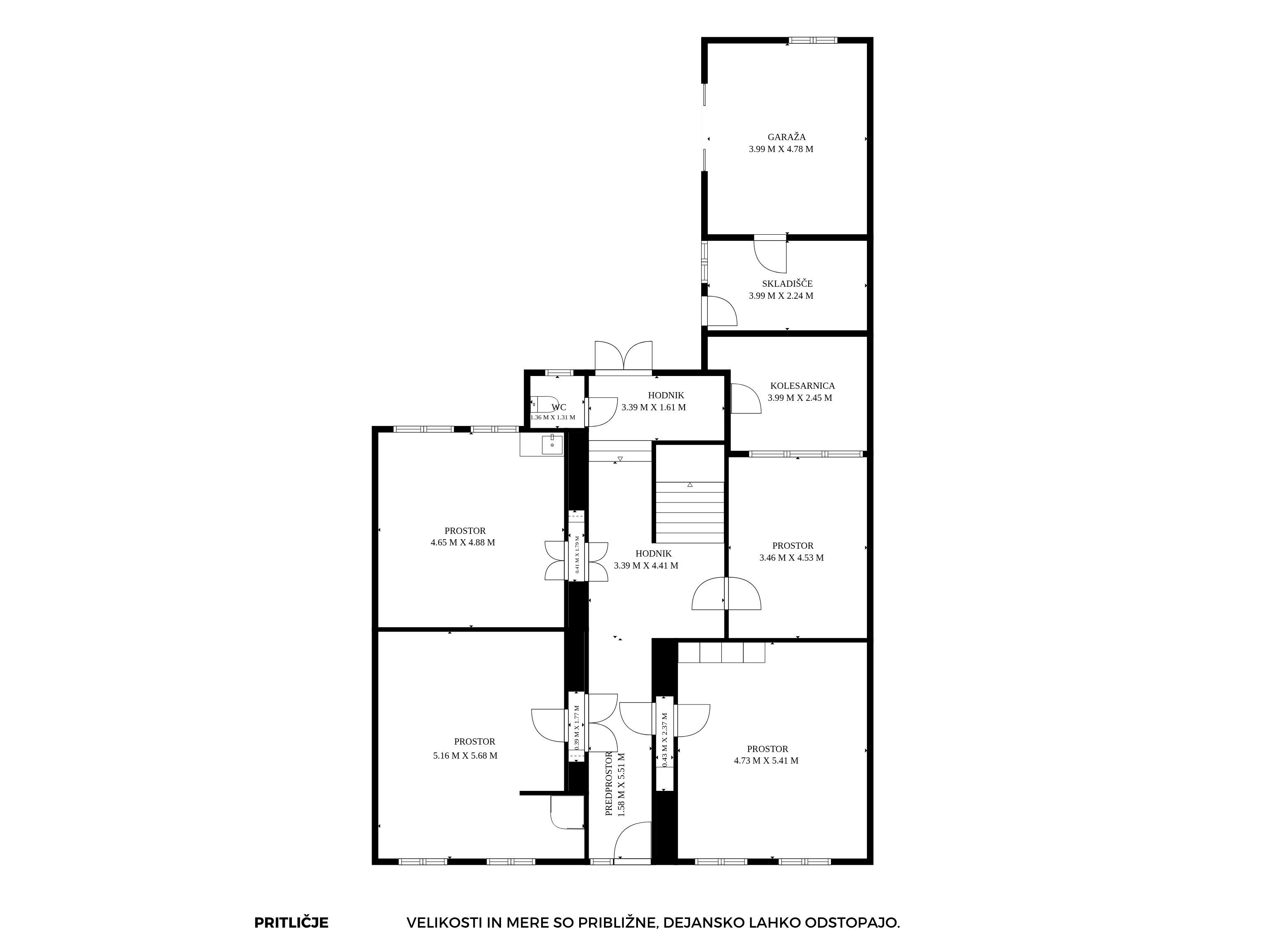 Vsaka etaža ima lasten električni števec. Vse etaže med seboj povezuje notranje stopnišče s hodnikom. S hodnika v pritličju dostopamo do dvorišča, vrta in delavnice.
